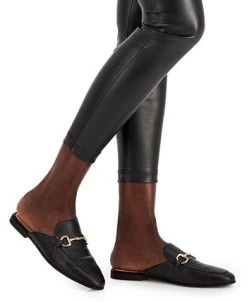 Bit buckle hardware adds metallic flash to a smart slip-on silhouette in Alfani’s Tinslee mules.