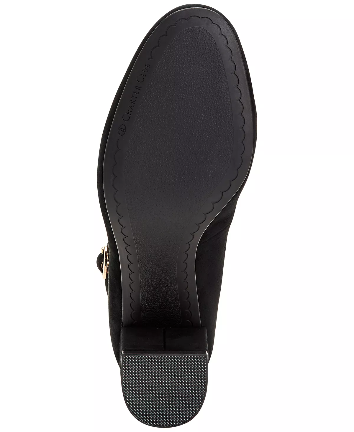 Slim ankle-strapping accents the trim silhouette of Charter Club’s Francina pumps to add a delicate dimension to handsome tailoring.