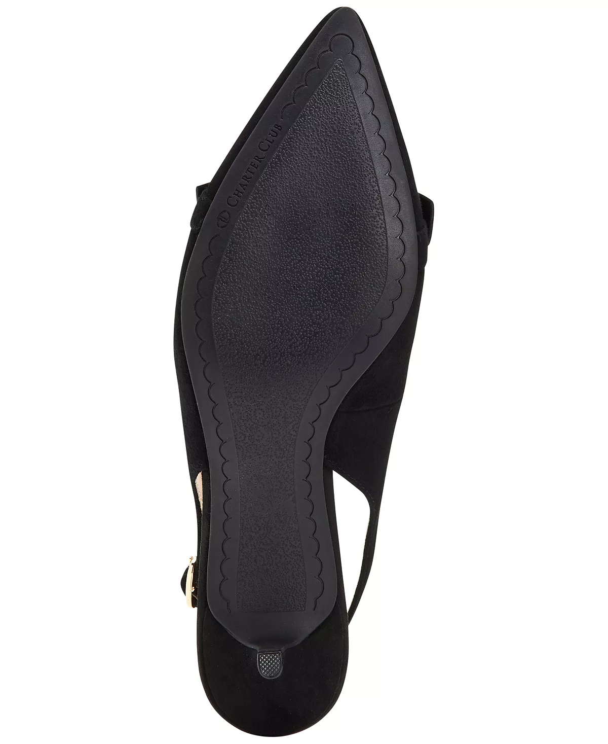 The Giavanna pumps from Charter Club are pointed with pretty bows and a comfortable slingback silhouette with lift on a sweet kitten heel.