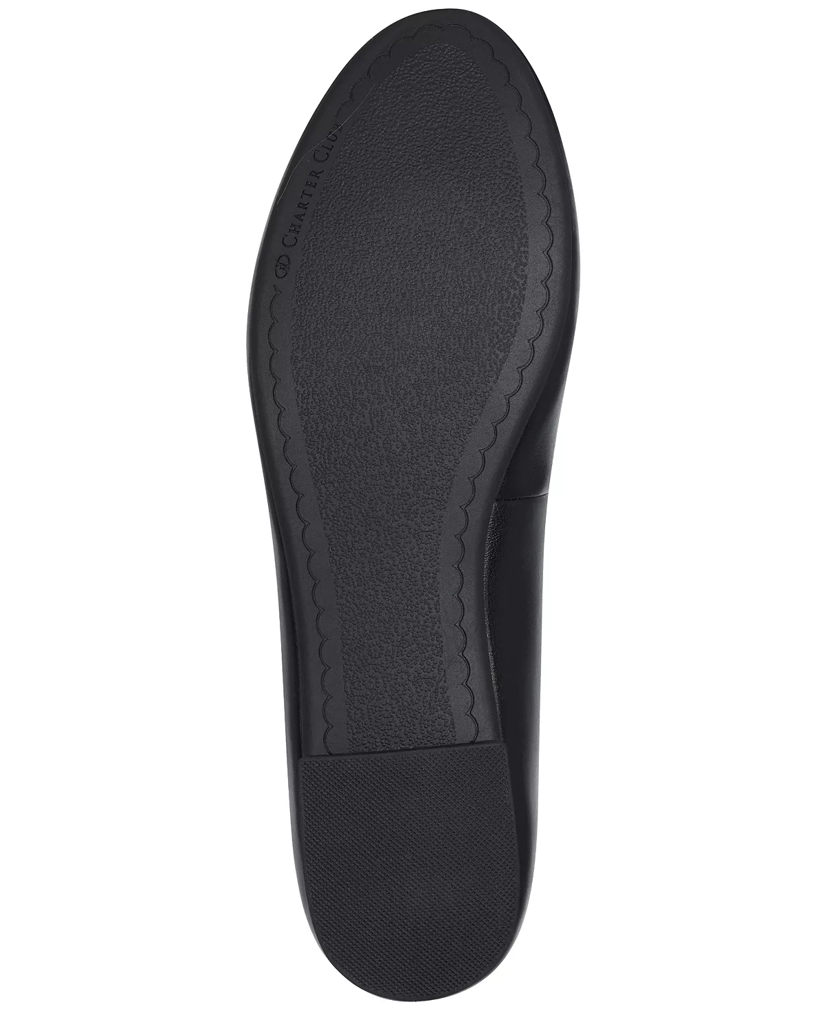 Skinny bow trim and shiny hardware details add perfectly pretty touches to Charter Club’s Kaii flats.