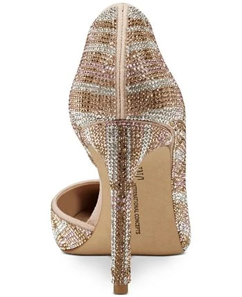 INC International Concepts’ Kenjay pumps add luxe intrigue to your evening look in a sultry d’Orsay silhouette studded with imitation pearls and rhinestones.