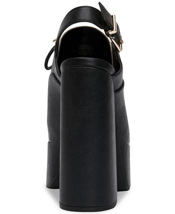 - Round-toe slip-on slingback platform clogs with adjustable buckle closure