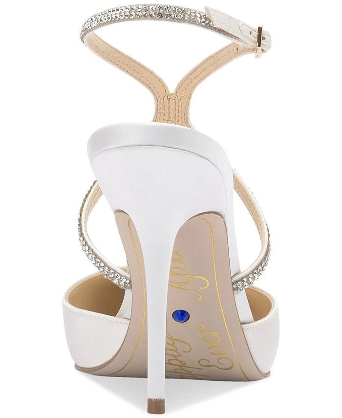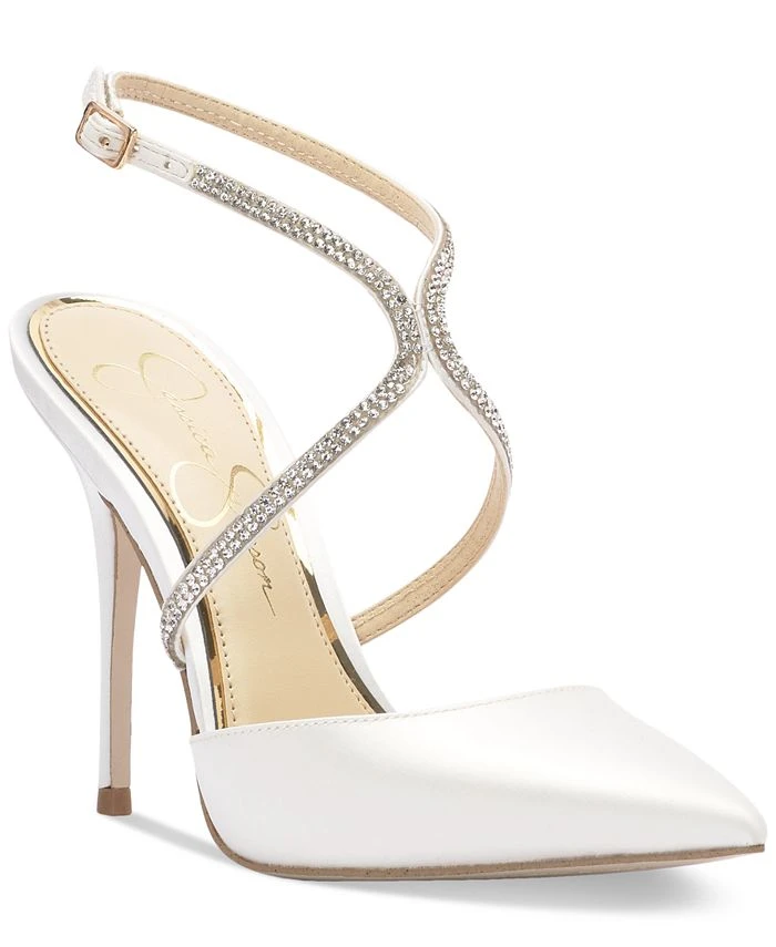 Satin pointed toes and glittering straps enhance a pretty silhouette in the sleek stiletto lift of Jessica Simpson’s Weyemia pumps.