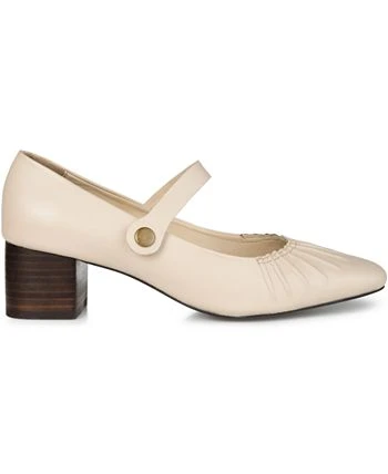 The Ellsy by Journee Signature is classically chic and infinitely wearable. This mary jane heel is shaped with genuine leather uppers lined with our signature 4mm tru comfort foam insole. A darling button fastens the strap, and ruched details embellish the toe.