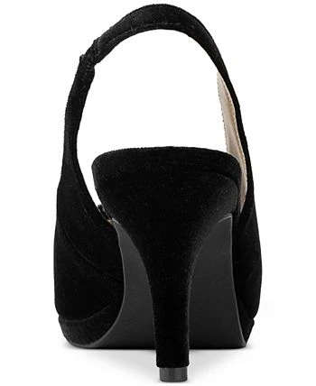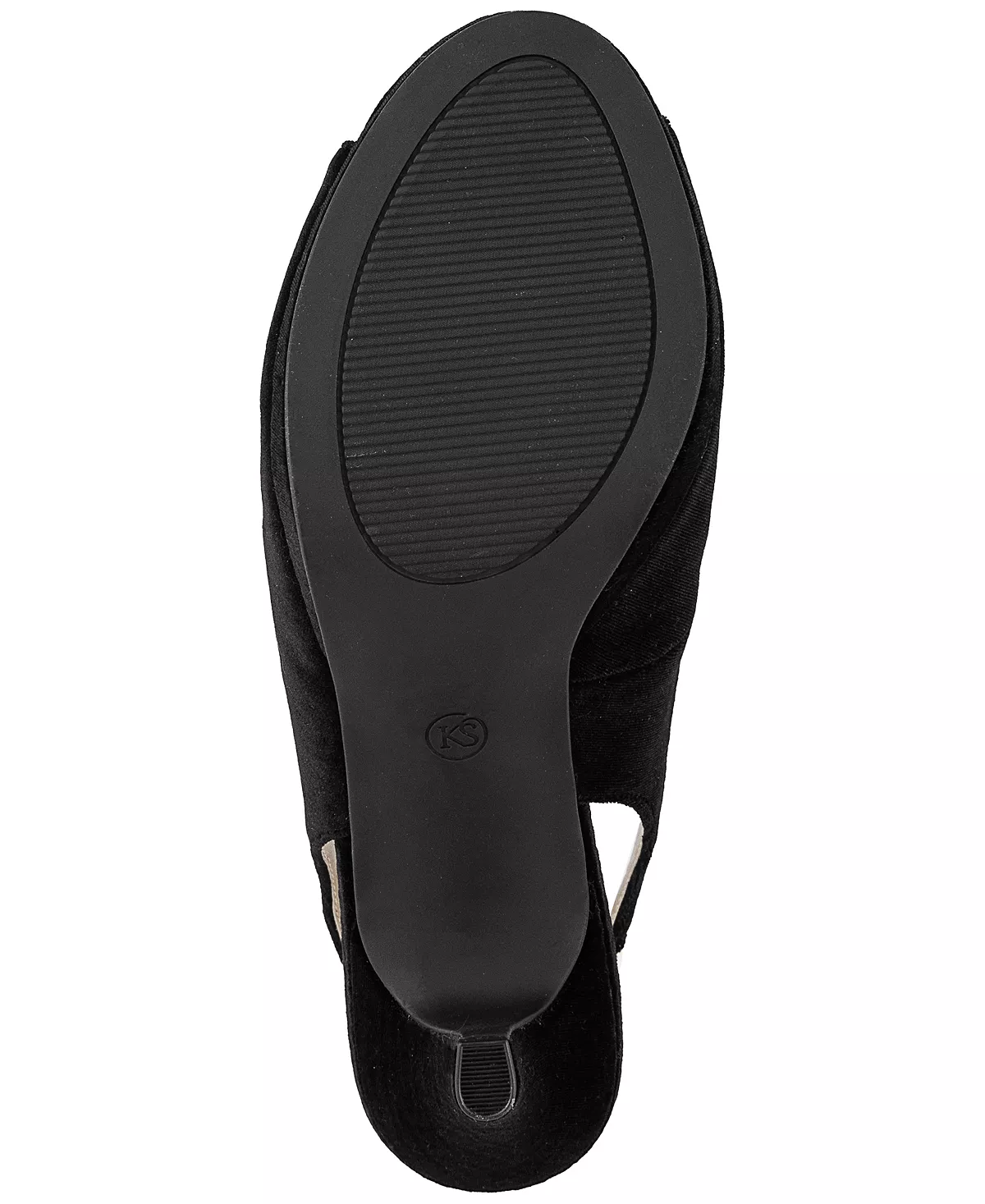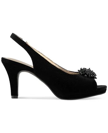 Shimmering metallics and a rhinestone brooch bring sparkling elegance to dressy looks in these Breena platform pumps from Karen Scott.