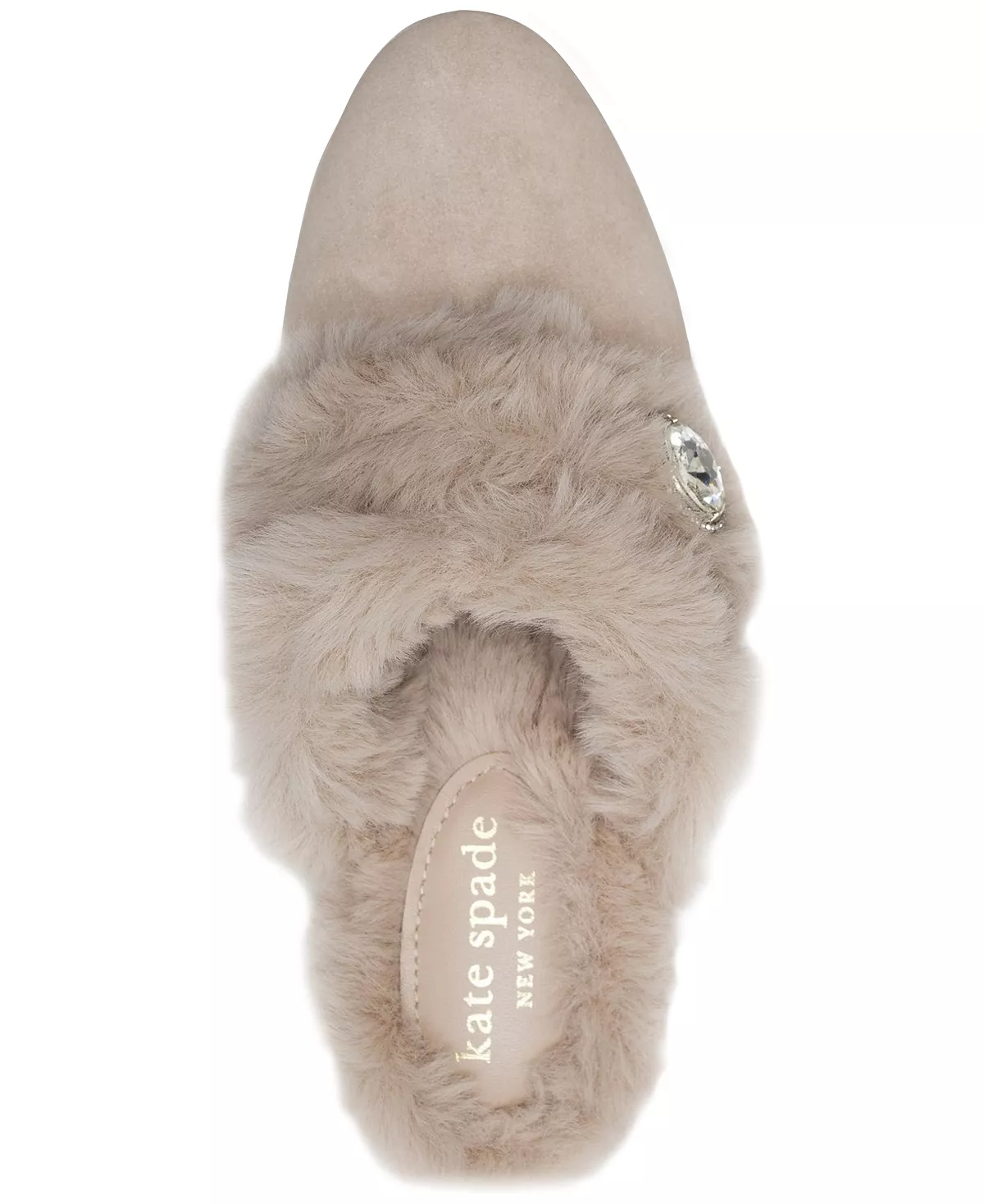 Fluffy faux-fur adds cozy appeal to rhinestone accents in the easy slip-on design of Kate Spade New York’s Uma clogs.