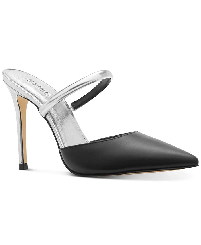 A single strap and pointed toes top slender heels in a pretty accent to dressy styles with the Jessa pumps from MICHAEL Michael Kors.