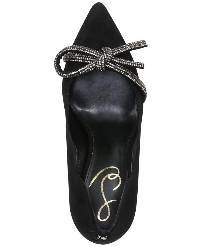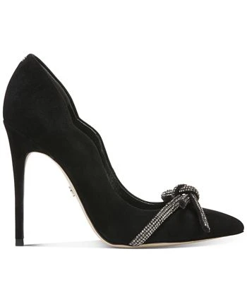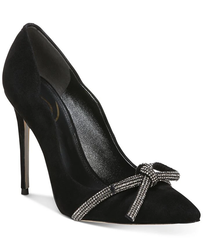 Topping a sleek stiletto heel with a rhinestone bow, the Deela pointed pumps from Sam Edelman dress up an elegant look with subtle sparkle.