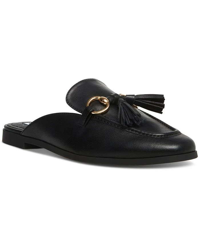 Tassel hardware adds sophisticated dimension to a simple slide silhouette in the Cayler loafer flats from Steve Madden.