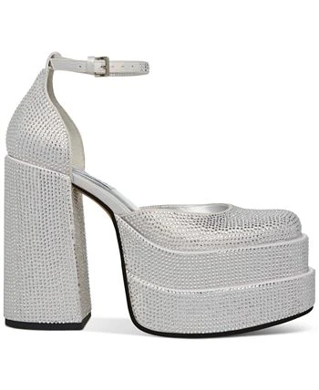 A bold double platform topped in sparkling rhinestones add gorgeous sparkle to dressy looks in Steve Madden’s Charlize pumps.