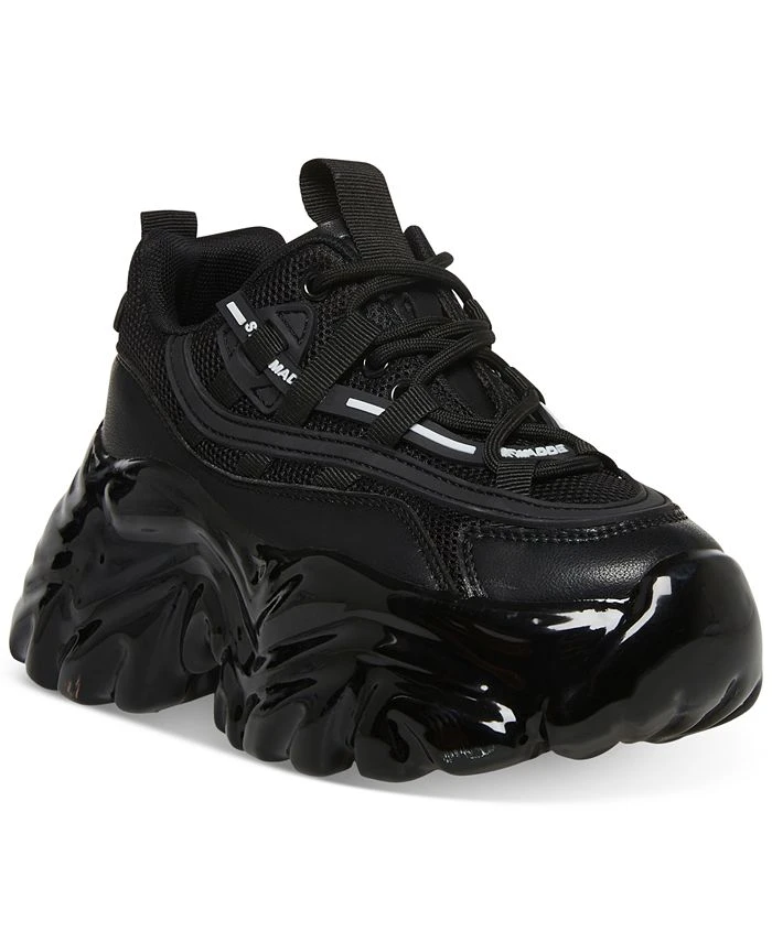 Robust and radiant platforms ground the sporty mixed-media style of the Ecker lace-up sneakers from Steve Madden.