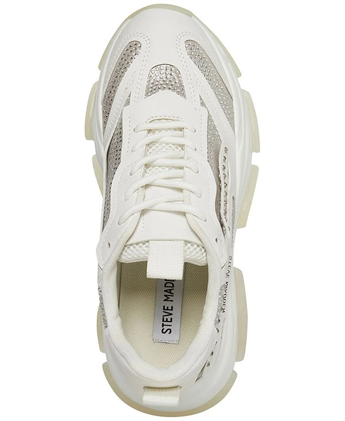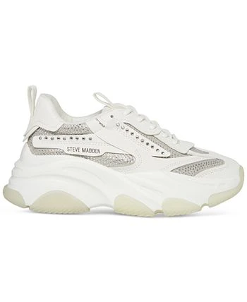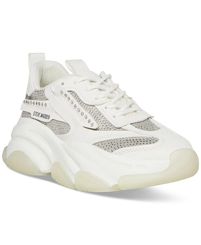 Glam-girl sparkle gets a sporty boost in the chunky platforms and glittering rhinestones of the Possession sneakers from Steve Madden.