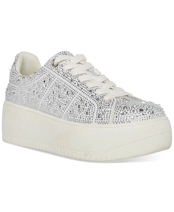 Chunky platforms add sporty lift to a low-top profile while shimmering rhinestones bring glam-girl appeal to the Rockaway sneakers from Steve Madden.