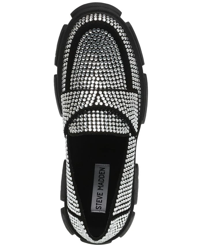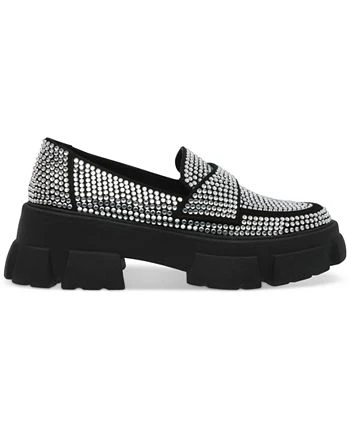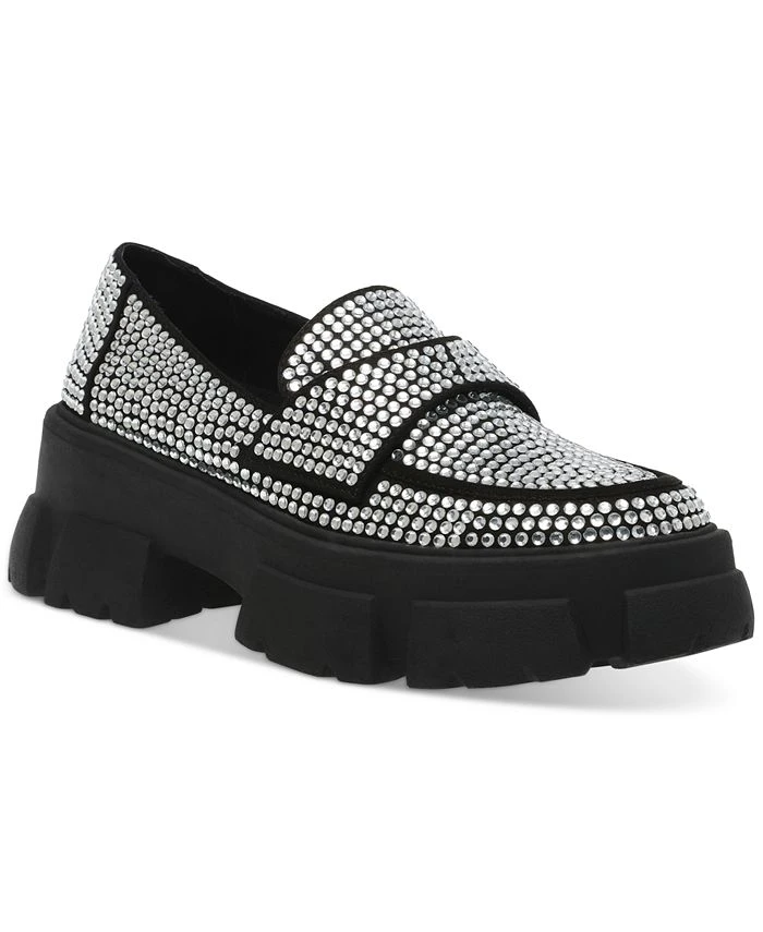 Clad in rhinestones, the Trifecta loafers from Steve Madden elevate a sparkling profile on a chunky lug platform and sturdy block heel.
