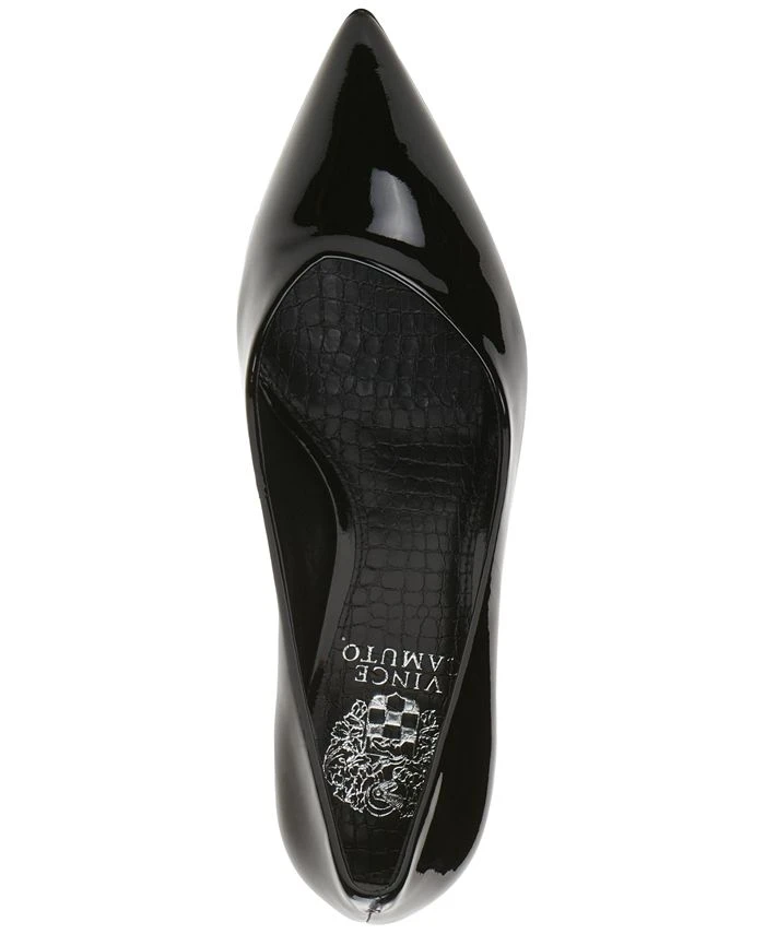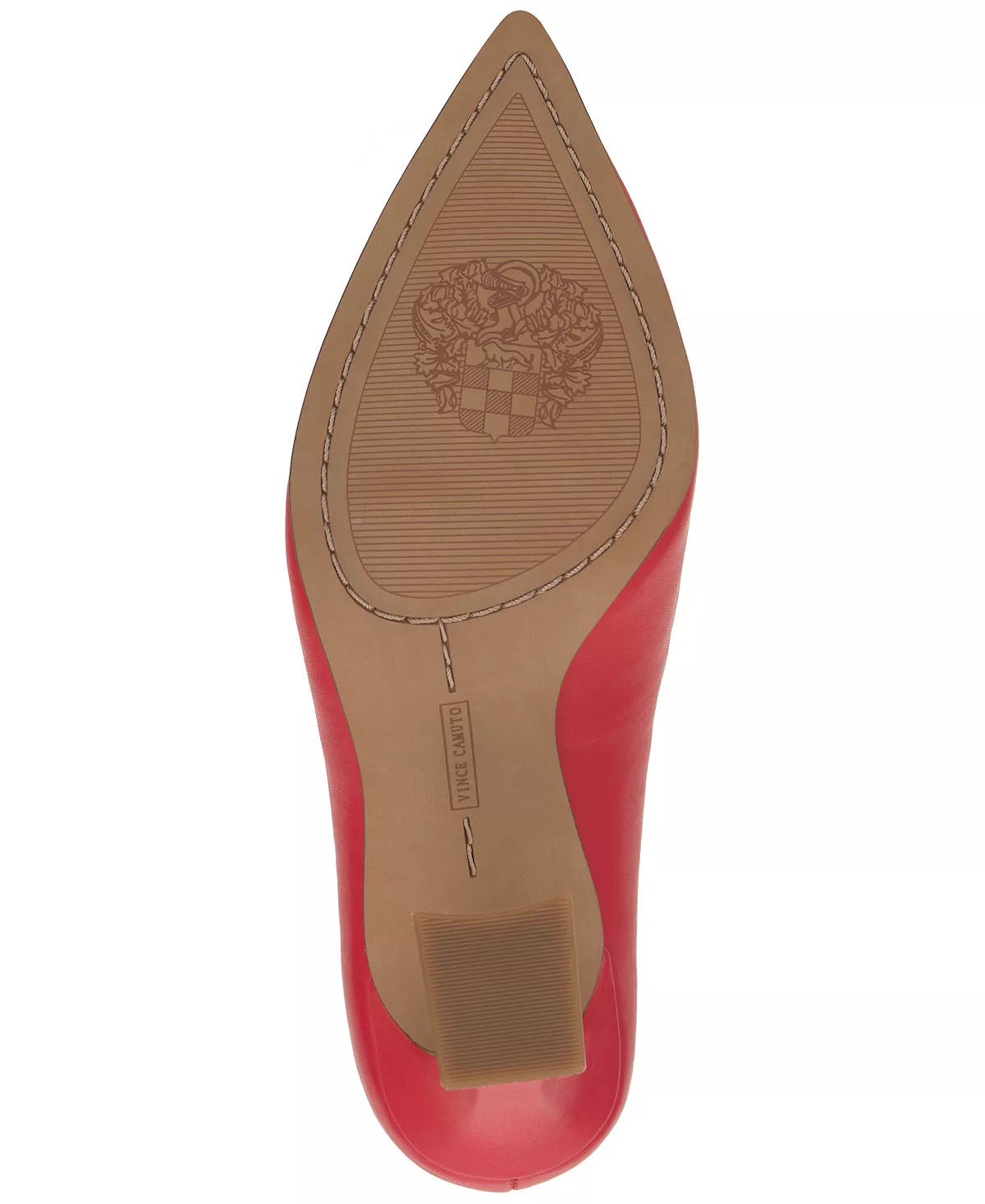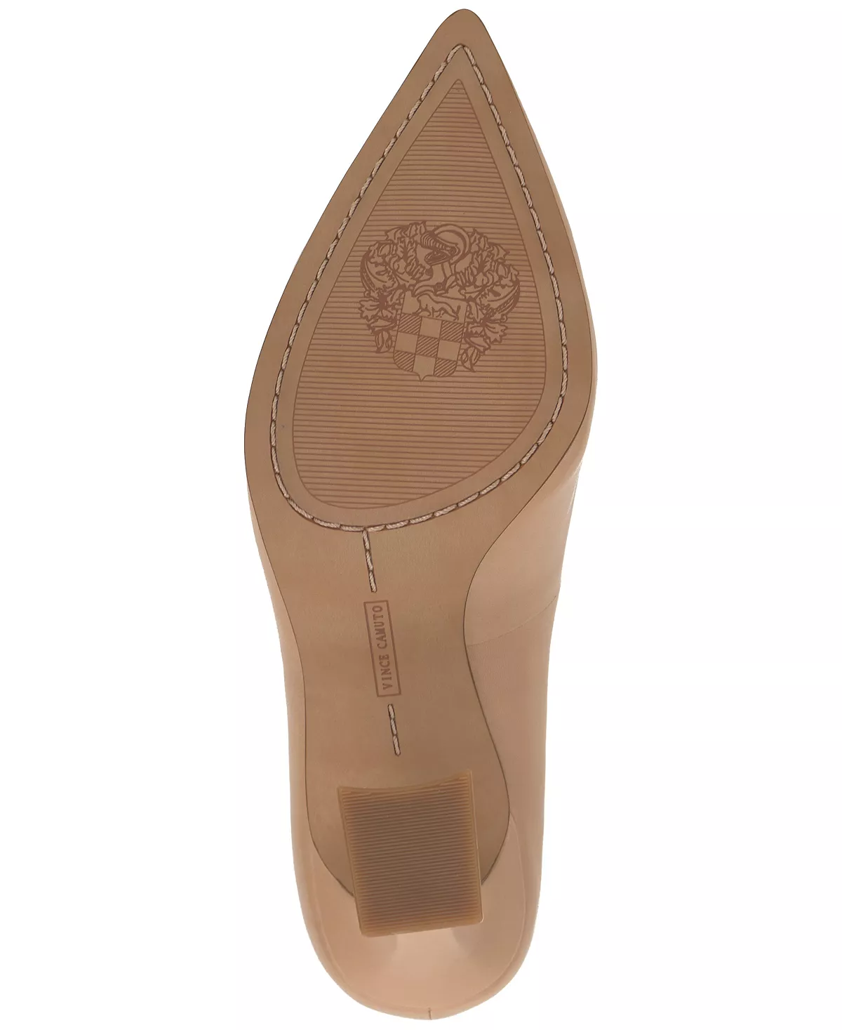 A patchwork of denim adds a retro-inspired feel to the flared heel lift of Vince Camuto’s fresh Akenta pumps.
